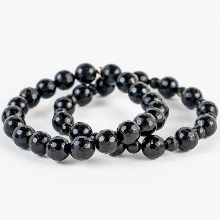 Black Tourmaline Bead Bracelet - Grounding, Protection, Cleansing